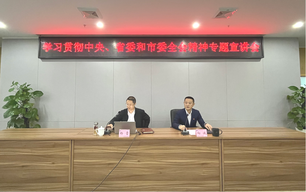 ? ? 1月12日上午,市國資委黨委書記楊雷到遂寧興業(yè)集團,對中央、省委和市委全會精神作專題宣講。會議由集團黨委副書記、總經(jīng)理向誠主持。集團黨委班子成員、中層管理干部、員工代表,以及直屬企業(yè)高管、黨群工作部門負責同志現(xiàn)場聆聽宣講。